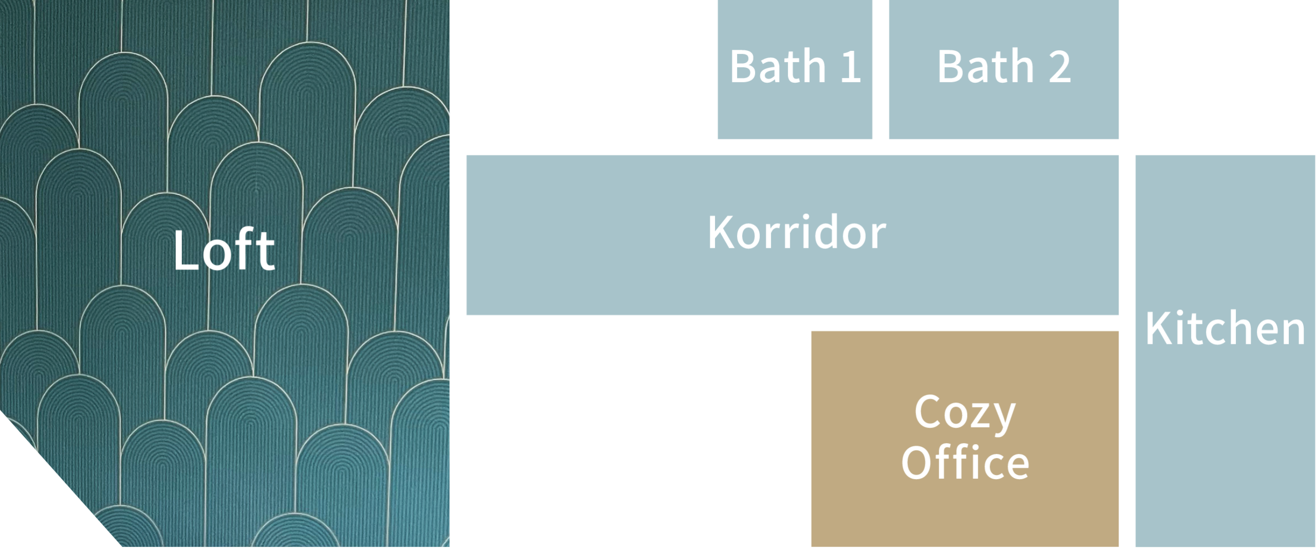 Zwei flexibel nutzbare Tische, 4 Samtstühle mit Armlehnen und ein großes Flipchart machen das Office zu einem Idealen Raum, auch für Business-Kunden, die einen minimalistischen Style bevorzugen. Zudem können die Wände als Präsentationsfläche genutzt werden, in dem die Inhalte auf Adhäsionsfolien geschrieben werden.